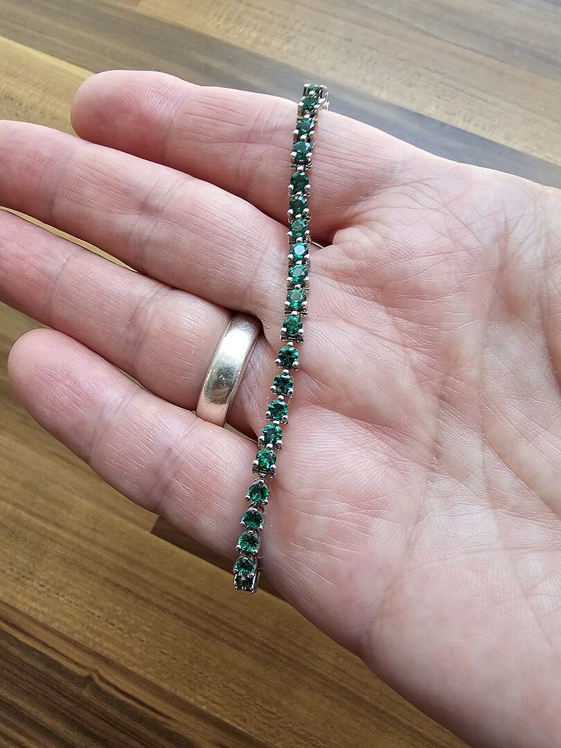 Prong-Set Round Lab-Grown Emerald Link Tennis Bracelet