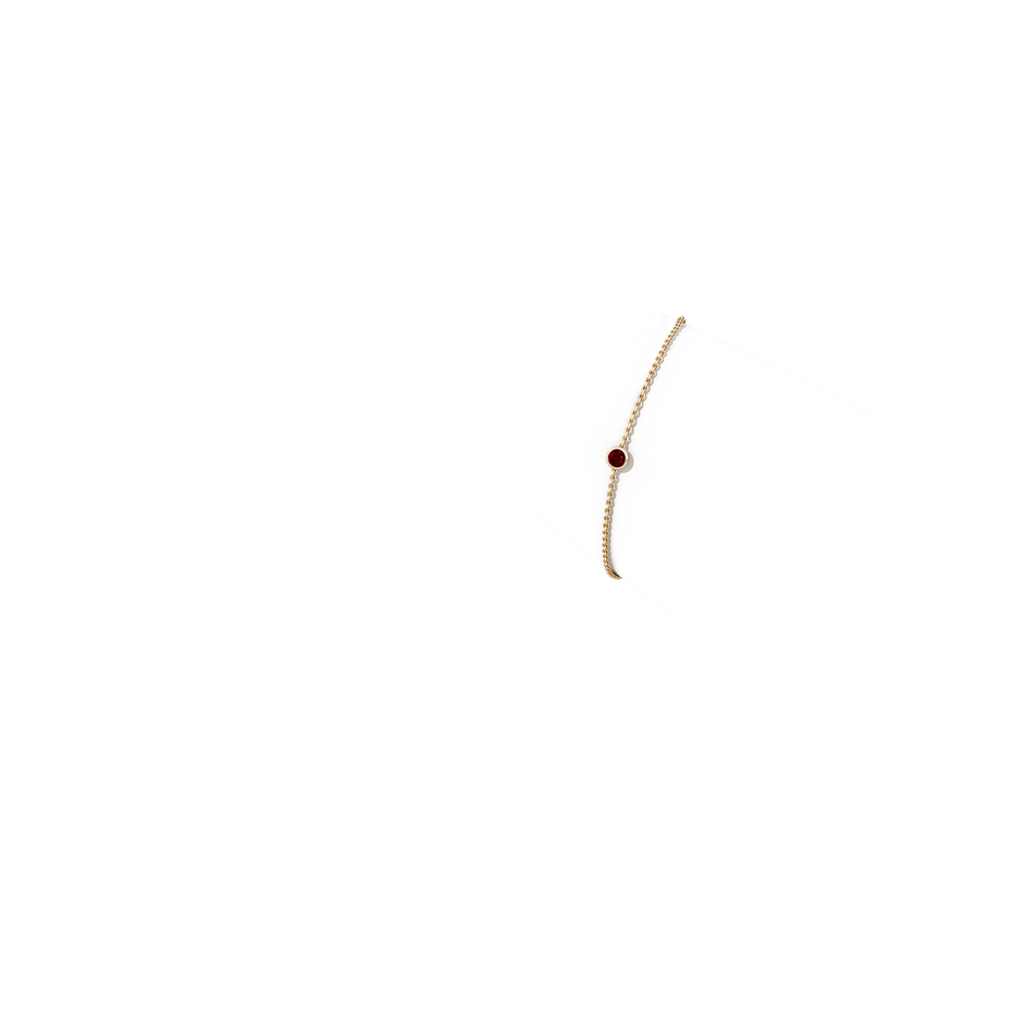 This Bezel-Set Round Ruby Chain Bracelet by Angara is a minimalist yet striking accessory. The 14k yellow gold chain holds a single AAAA-grade heated round ruby in a bezel setting, secured with a lobster claw clasp for effortless wear and a pop of rich red color.