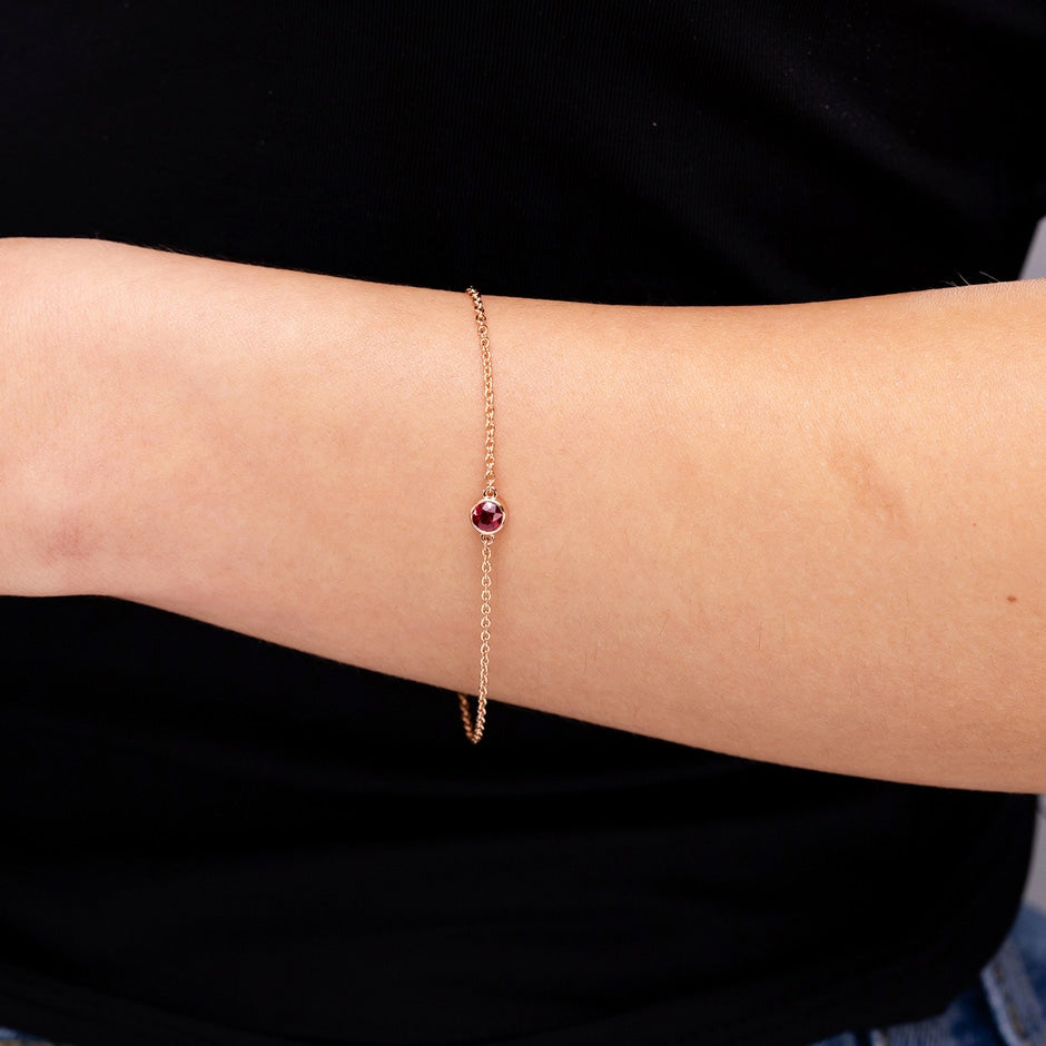 Bezel-Set Round Ruby Chain Bracelet