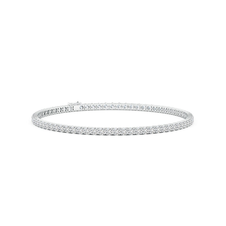 The Classic Diamond Linear Tennis Bracelet by Angara is a breathtaking accessory. Featuring 61 prong-set round diamonds, this 14k white gold bracelet sparkles brilliantly and secures with a catch clasp for comfort and style.