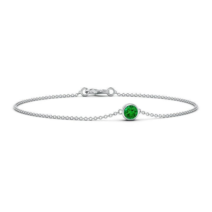 Made in 14k white gold featuring one AAAA-grade round emerald approximately 4mm in diameter, 0.24 carats, bezel setting, lobster claw clasp.