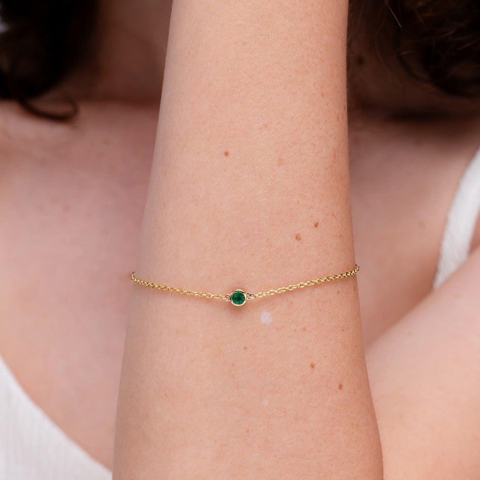 Bezel-Set Round Emerald Chain Bracelet