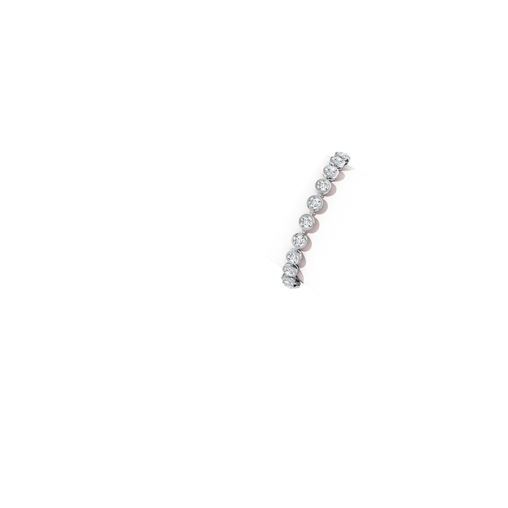 This Bezel-Set Round Lab-Grown Diamond Eternity Chain Bracelet by Angara offers a larger carat weight option with 12 round lab-grown diamonds bezel set along a 14k white gold chain. The elegant piece combines luxury and wearability, secured with a lobster claw clasp.