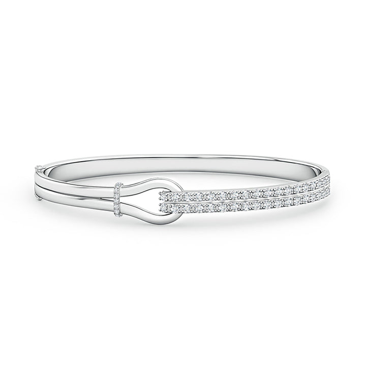 This Diamond Encrusted Interlocking Love Knot Bracelet by Angara celebrates devotion with graceful style. Crafted in 14k white gold, the bracelet showcases an interlocking love knot accented by 45 prong-set diamonds that shimmer along the links. The design symbolizes unity and affection, secured with a reliable catch clasp, making it an exquisite gift of love and elegance.