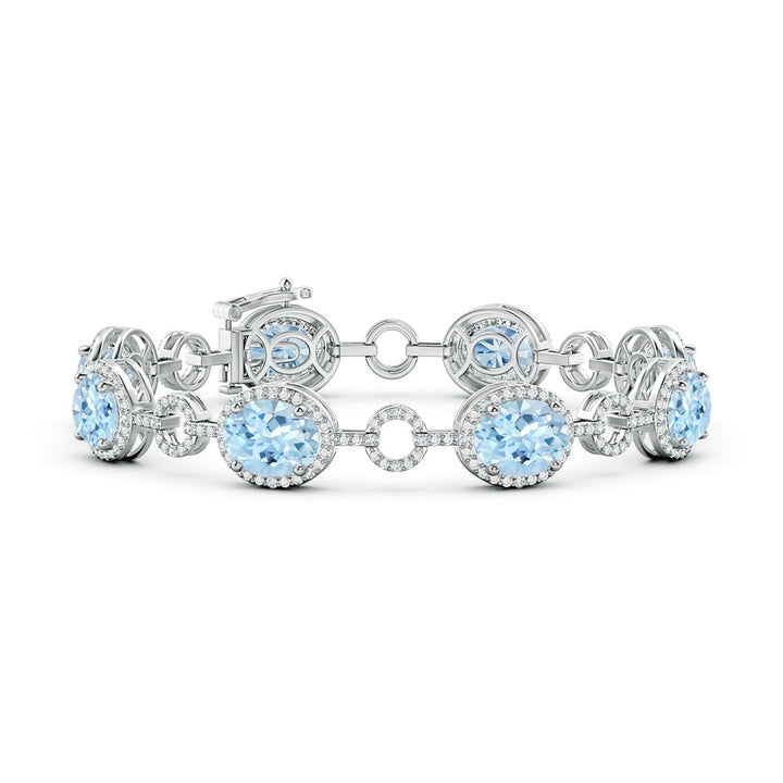 Oval Aquamarine Halo Open Circle Link Bracelet