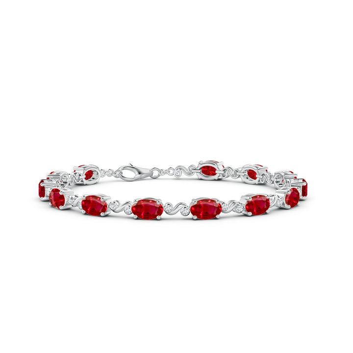 Oval Ruby Swirl Bracelet with Bezel Diamonds