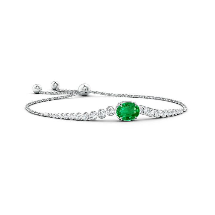 Oval Emerald Bolo Bracelet with Bezel Diamonds