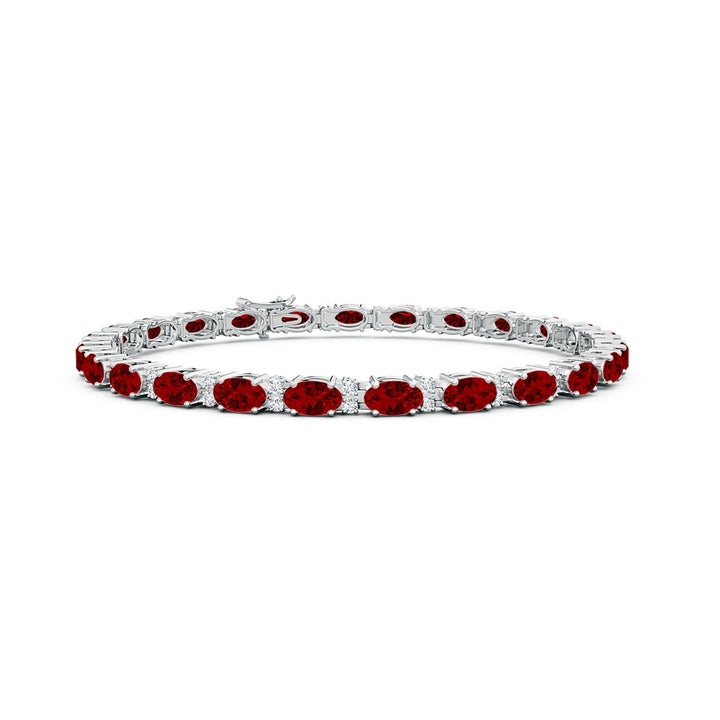 Lab-Grown Classic Oval Ruby and Lab Diamond Tennis Bracelet
