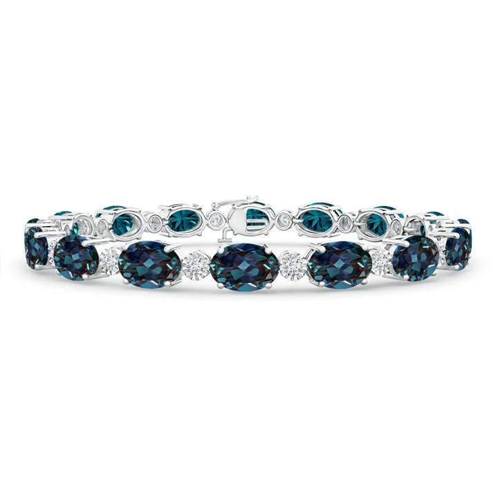 Oval Lab-Grown Alexandrite Stackable Bracelet with Illusion Diamonds