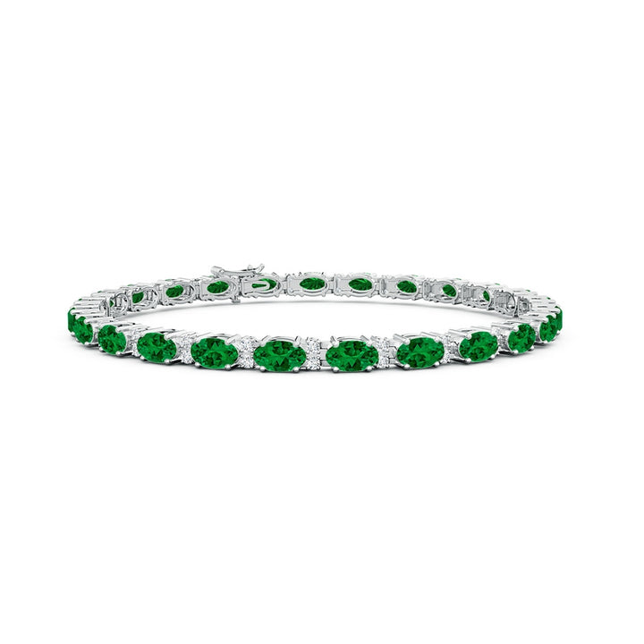 Lab-Grown Classic Oval Emerald and Lab Diamond Tennis Bracelet