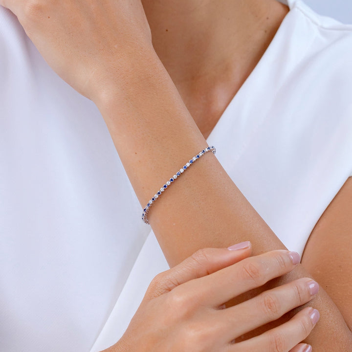 Lab-Grown Classic Round Sapphire and Lab Diamond Tennis Bracelet