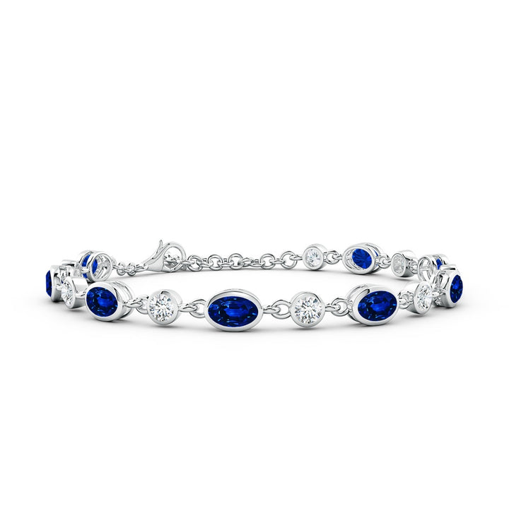 Alternating Oval Lab-Grown Blue Sapphire and Round Diamond Tennis Bracelet