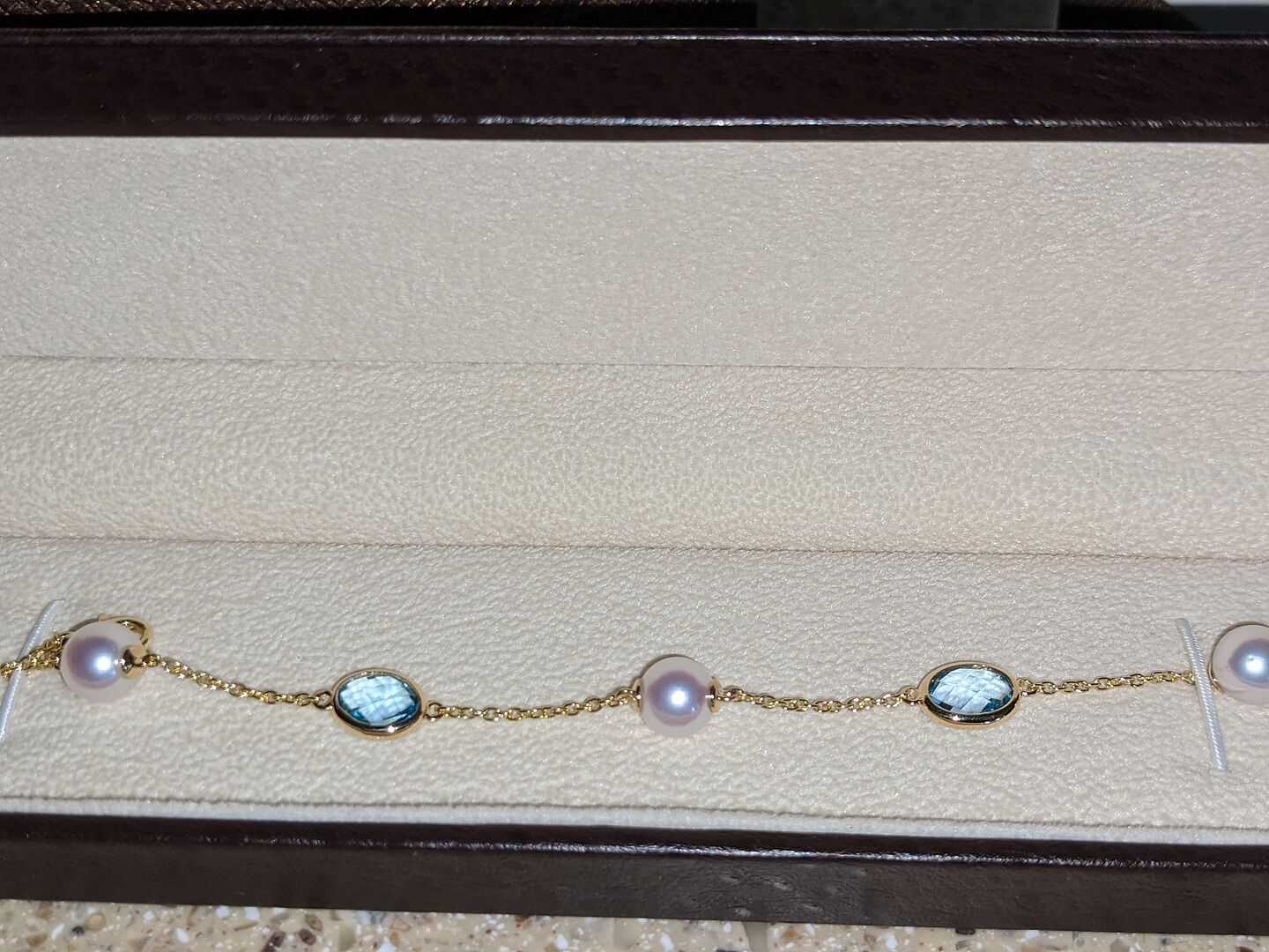 Freshwater Pearl & Oval London Blue Topaz Bracelet