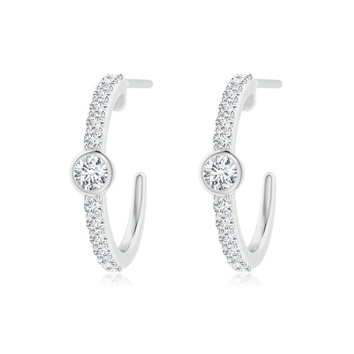 These Lab-Grown Bezel-Set Diamond Hoop Earrings with Accents by Angara blend timeless curves with modern bezel detailing. Set with 26 sparkling lab-grown diamonds, these hoops offer a balanced mix of sophistication and everyday versatility. The push-back closures provide security, making them perfect for daily wear with a touch of refined glamour.