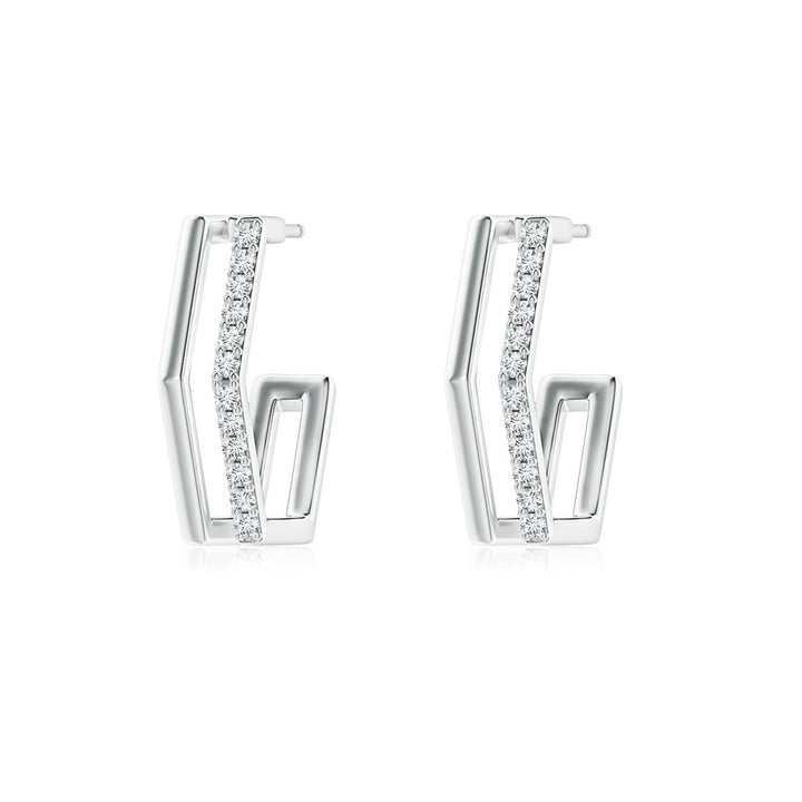 These Lab-Grown Alternating Diamond Hexagonal Double Hoop Earrings by Angara reimagine geometry with elegance. Featuring a bold double hoop design in sleek hexagonal contours, the earrings sparkle with alternating lab-grown diamonds. A confident expression of structured sophistication.