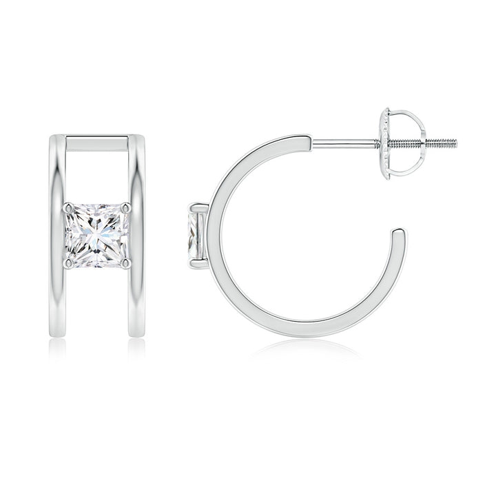 Lab-Grown Princess Diamond Solitaire Parallel Huggie Hoop Earrings