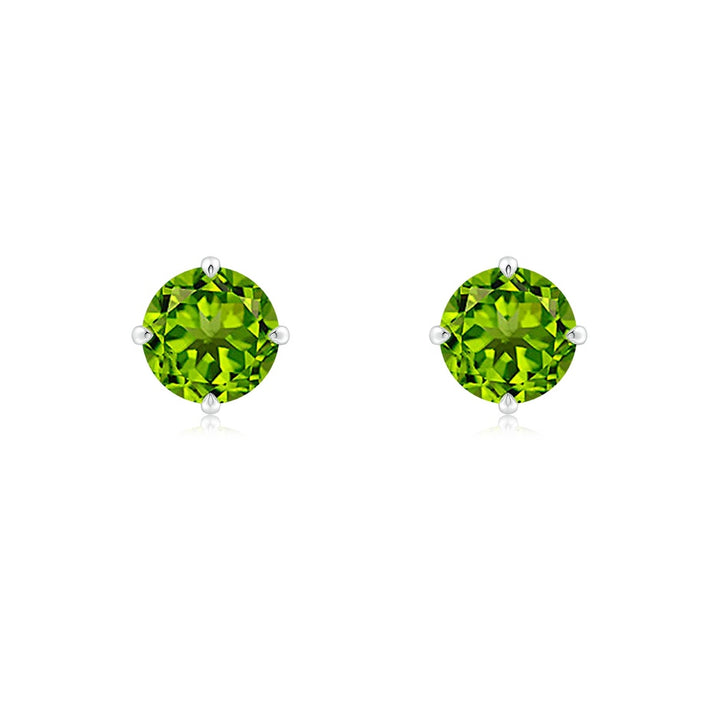 Crafted in 14k white gold. Includes 2 round peridot stones, AAAA quality grade, approximately 6mm each, total carat weight 1.90 ct. Prong setting in a basket style.