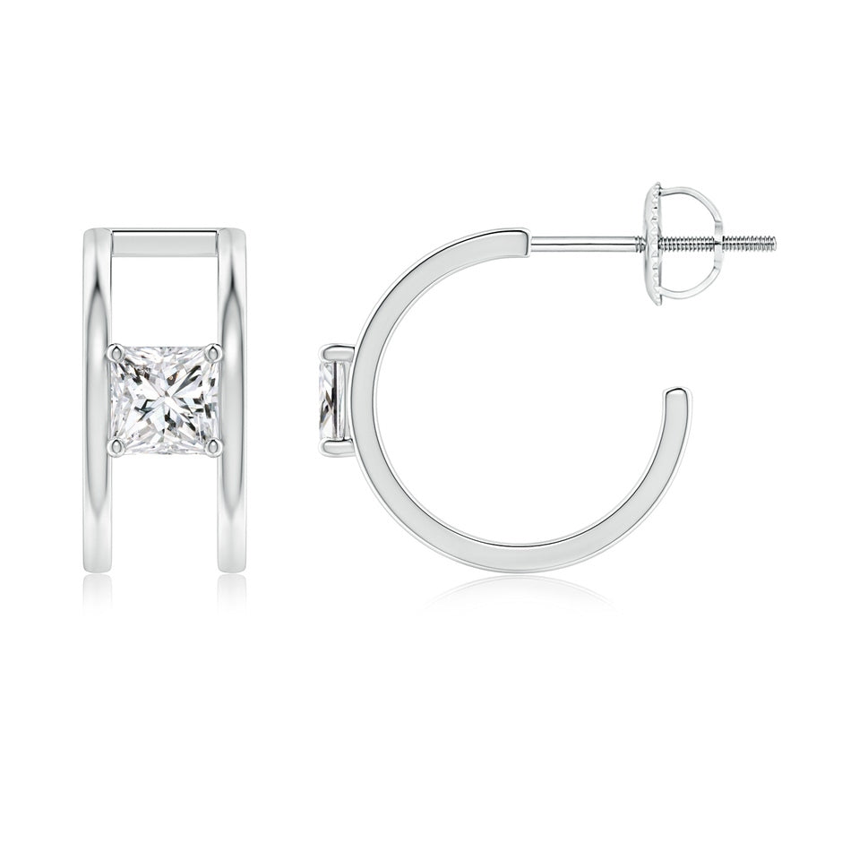 These Princess Diamond Solitaire Parallel Huggie Hoop Earrings by Angara are bold yet elegant. The princess-cut diamonds are nestled between polished parallel 14k white gold lines, creating a modern geometric look with a sparkle that commands attention. Push-back closures add secure comfort.