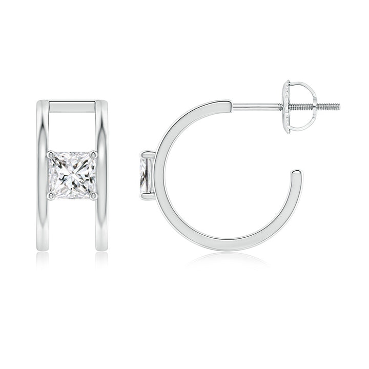 Princess Diamond Solitaire Parallel Huggie Hoop Earrings
