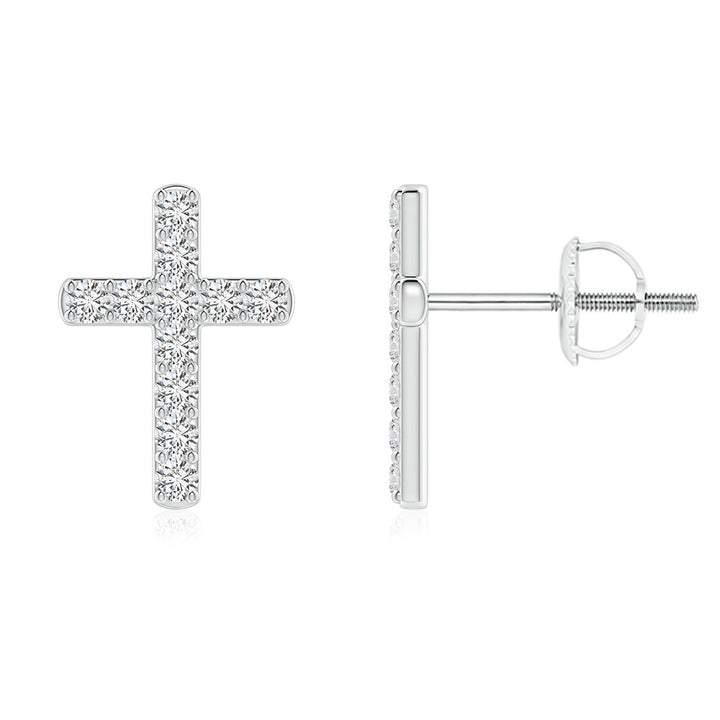 These Diamond Cross Stud Earrings by Angara are a timeless symbol of faith and commitment. Crafted in 14k white gold, the crosses are encrusted with round diamonds that shimmer beautifully, offering an elegant and meaningful accessory.