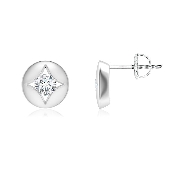 These Channel-Set Diamond Solitaire Round Stud Earrings by Angara blend classic allure with modern craftsmanship. Each 14k white gold earring features a brilliant round diamond securely channel-set within a kite-shaped cut-out, delivering a unique and stylish sparkle. Their versatile elegance suits both everyday wear and special occasions, offering a sophisticated yet understated statement.