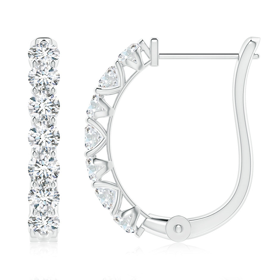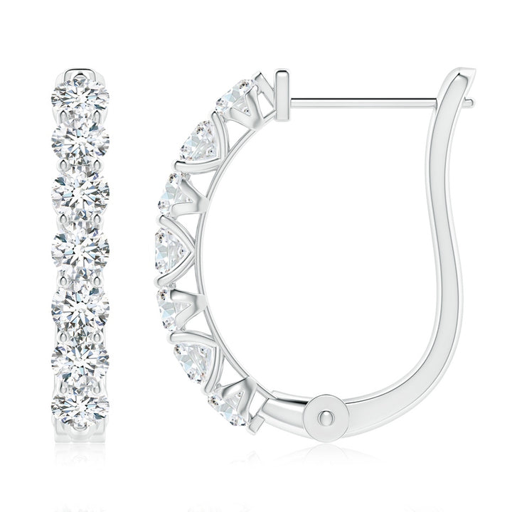 Crafted in 14K white gold, featuring 14 round F-G color, VS clarity lab-grown diamonds totaling 1.47 cts, set in prong settings with hinged clip closures.