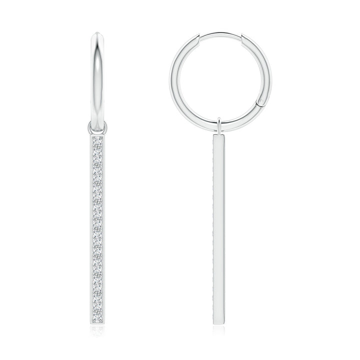 These Hinged Hoop Dangling Diamond Bar Earrings by Angara offer a modern twist on classic elegance. Crafted in 14k white gold, the vertical bars are adorned with 40 pave-set round diamonds that shimmer with breathtaking brilliance, linked to hinged hoops for comfortable, stylish wear.