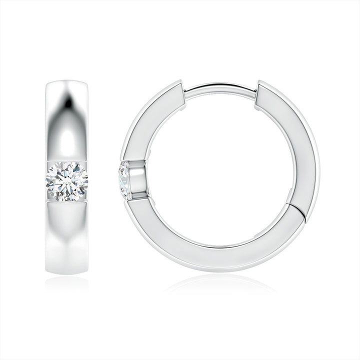 These Lab-Grown Channel-Set Round Diamond Hinged Hoop Earrings by Angara are a must-have addition to any collection, combining everyday wearability with exquisite sparkle. The channel setting in platinum enhances the sleek silhouette while protecting the lab-grown diamonds, creating a modern and durable design. Ideal for rotation in your daily jewelry wardrobe.