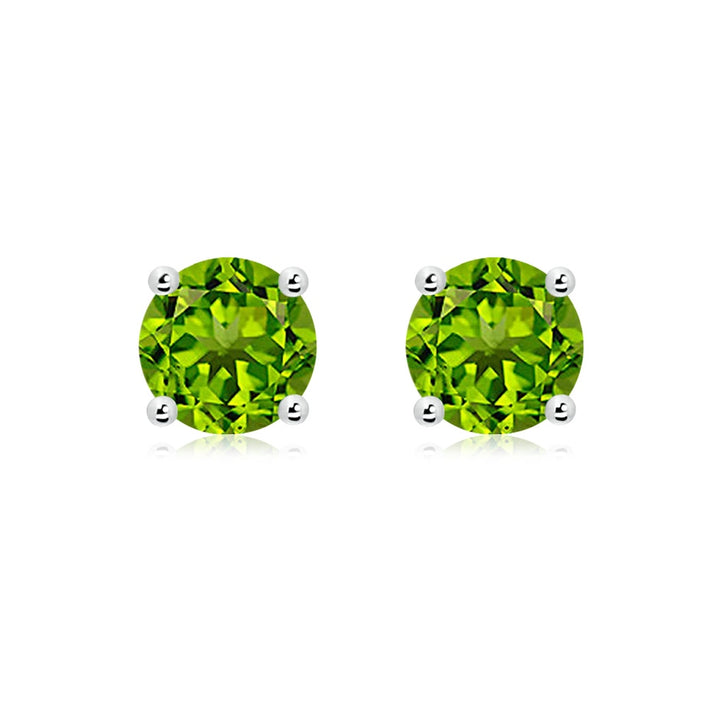 Crafted in platinum with two round peridots approximately 8mm each, total carat weight 4.00 carats, AAAA quality, prong (basket) setting. Available in white, yellow, and rose gold.