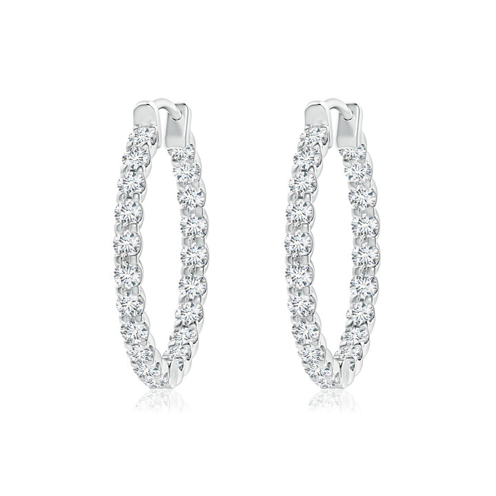Style Notes: These Prong-Set Round Lab-Grown Diamond Inside Out Hoop Earrings by Angara dazzle from every angle with forty-two brilliant lab-grown diamonds set on the inside and outside of polished platinum hoops. The prong setting maximizes sparkle, making these earrings a spectacular statement of modern luxury.