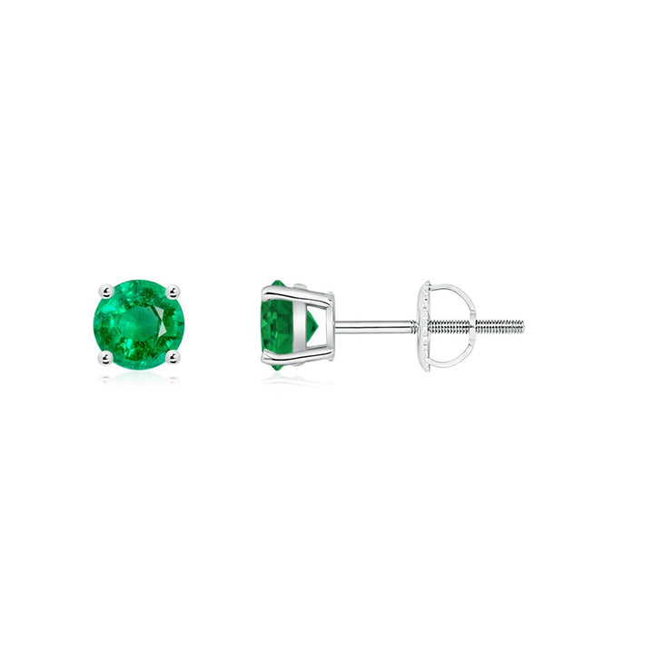 These Basket-Set Round Emerald Studs by Angara are a classic embodiment of elegance. The rich green AAA-grade round emeralds are securely held in 14k white gold basket prong settings, offering a simple yet sophisticated sparkle perfect for everyday luxury or special occasions.