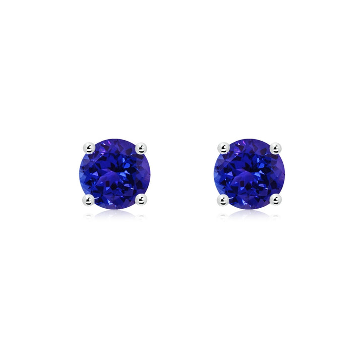 These Basket-Set Round Tanzanite Studs by Angara captivate with striking bluish-violet hues. Set in 14k white gold basket prong settings, the AAAA-grade round tanzanites exude elegance and vibrant color perfect for refined daily wear or special occasions.