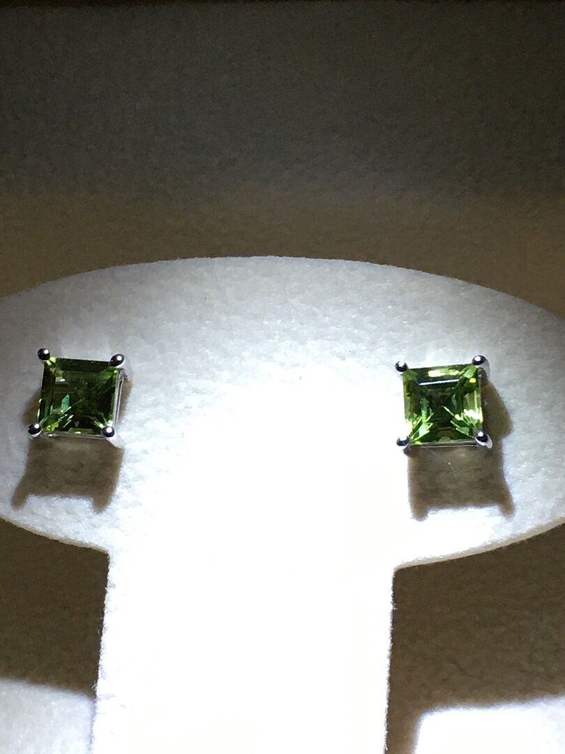 Crafted in 18k white gold. Set with 2 square AAAA-grade Swiss Blue Topazes (~6mm each, total 2.70 cts) in basket prong settings.