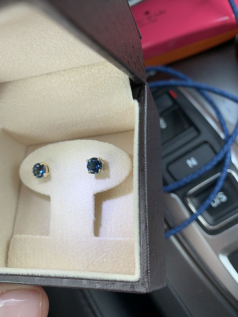 Crafted in 18k white gold. Set with 2 round AAA heated and irradiated London blue topazes (~8mm, total 4.70 ct) in basket prong settings.