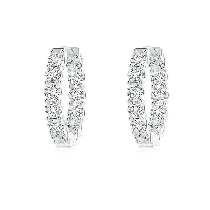 Prong-Set Round Diamond Inside Out Hinged Clip Hoop Earrings by Angara elevate classic hoop earrings with dazzling brilliance. These 14k white gold hoops are adorned with 24 prong-set round diamonds on both inner and outer surfaces, creating a spectacular inside-out sparkle that complements any ensemble with refined elegance.