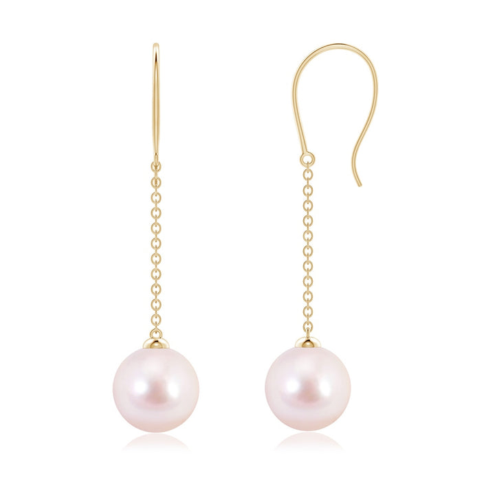 These Dangling Solitaire Japanese Akoya Pearl Earrings by Angara embody timeless elegance with their refined design. Suspended from delicate 14k yellow gold cable chains, the lustrous 8mm Akoya cultured pearls captivate with their ultra-high luster and classic sophistication. Perfect for adding a graceful, radiant touch to any ensemble.