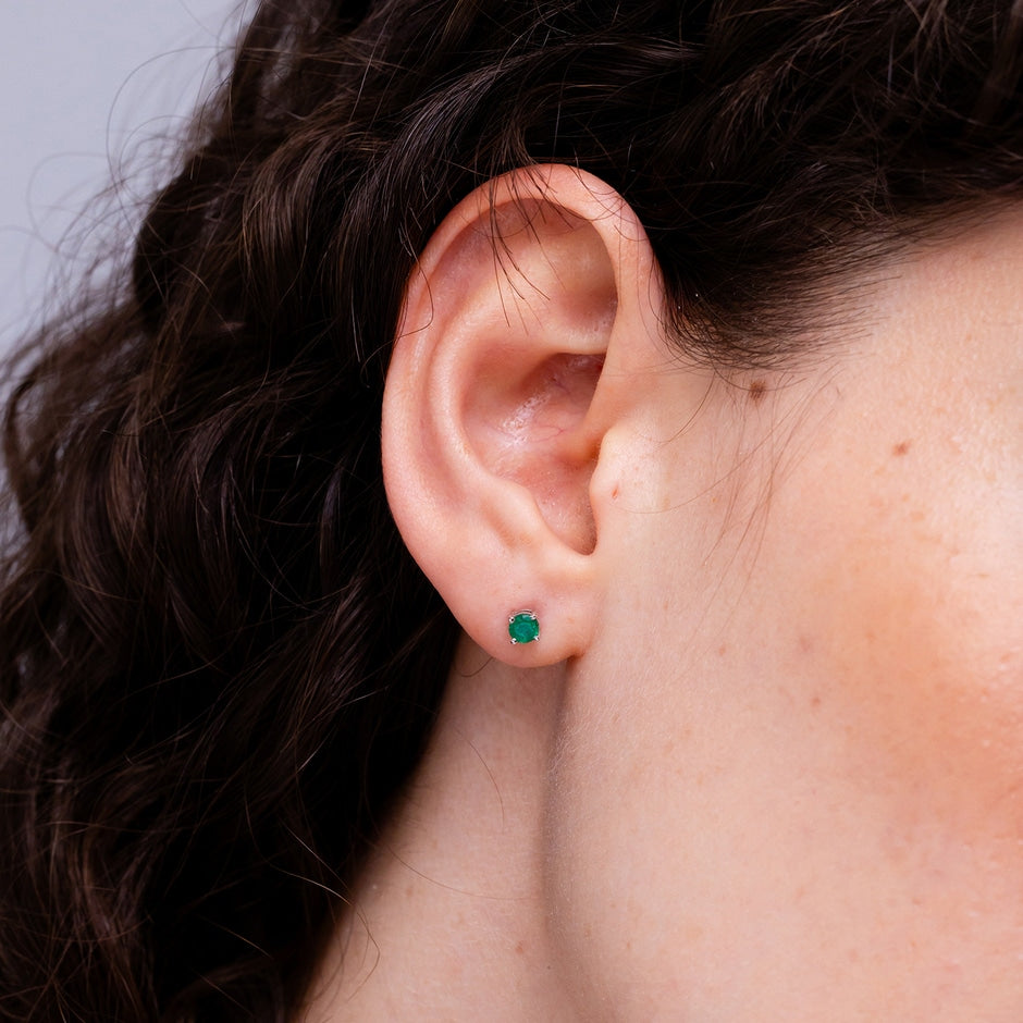 Round Emerald Stud Earrings