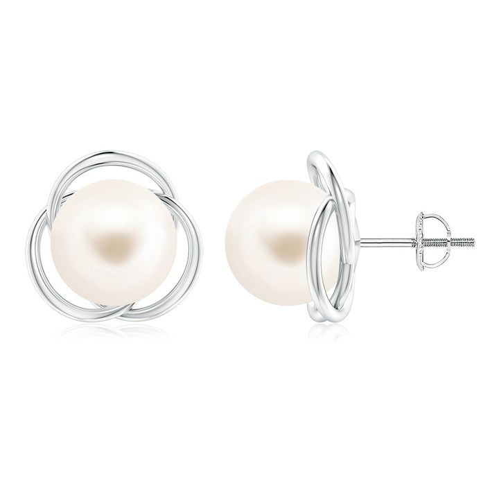 These Freshwater Pearl Love Knot Studs by Angara exude classic elegance and tender symbolism. Nestled within a delicate love knot frame, the lustrous cultured freshwater pearls radiate a soft, glossy sheen that symbolizes purity and timeless love. Designed in 14k white gold, these pearl studs are a refined expression of grace and sophistication, perfect for everyday wear or special occasions. The love knot detail adds an emotional depth, making them a heartfelt gift or a treasured addition to any jewelry collection.