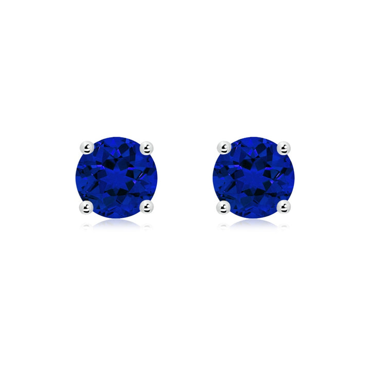These Lab-Grown Round Blue Sapphire Stud Earrings by Angara embody classic sophistication and vibrant color. Set in 14k white gold basket-style prong settings, the deep blue lab-grown sapphires exhibit exceptional brilliance and rich hue. Designed for everyday elegance or special occasions, these studs are an enduring addition to any jewelry collection.