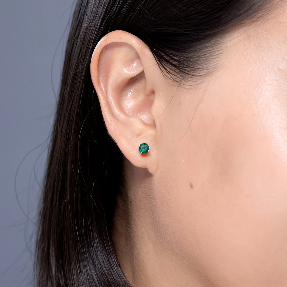 Vintage Style Round Emerald Solitaire Stud Earrings