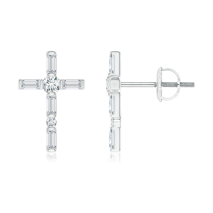 Bar-Set Baguette Diamond Cross Stud Earrings