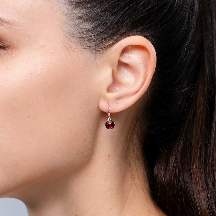 Round Garnet Fish Hook Earrings with Diamond Accents
