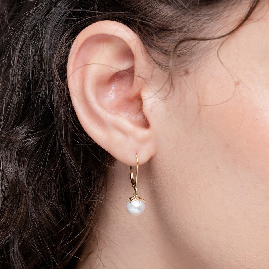 These Freshwater Pearl Leverback Drop Earrings by Angara celebrate classic sophistication with two luminous round freshwater cultured pearls that dangle delicately from 18K white gold leverback hooks. The very high luster and thick nacre of these AAA grade pearls symbolize purity and elegance, perfect for elevating both day and evening looks. Pair these earrings with matching pearl jewelry to complete a refined ensemble.