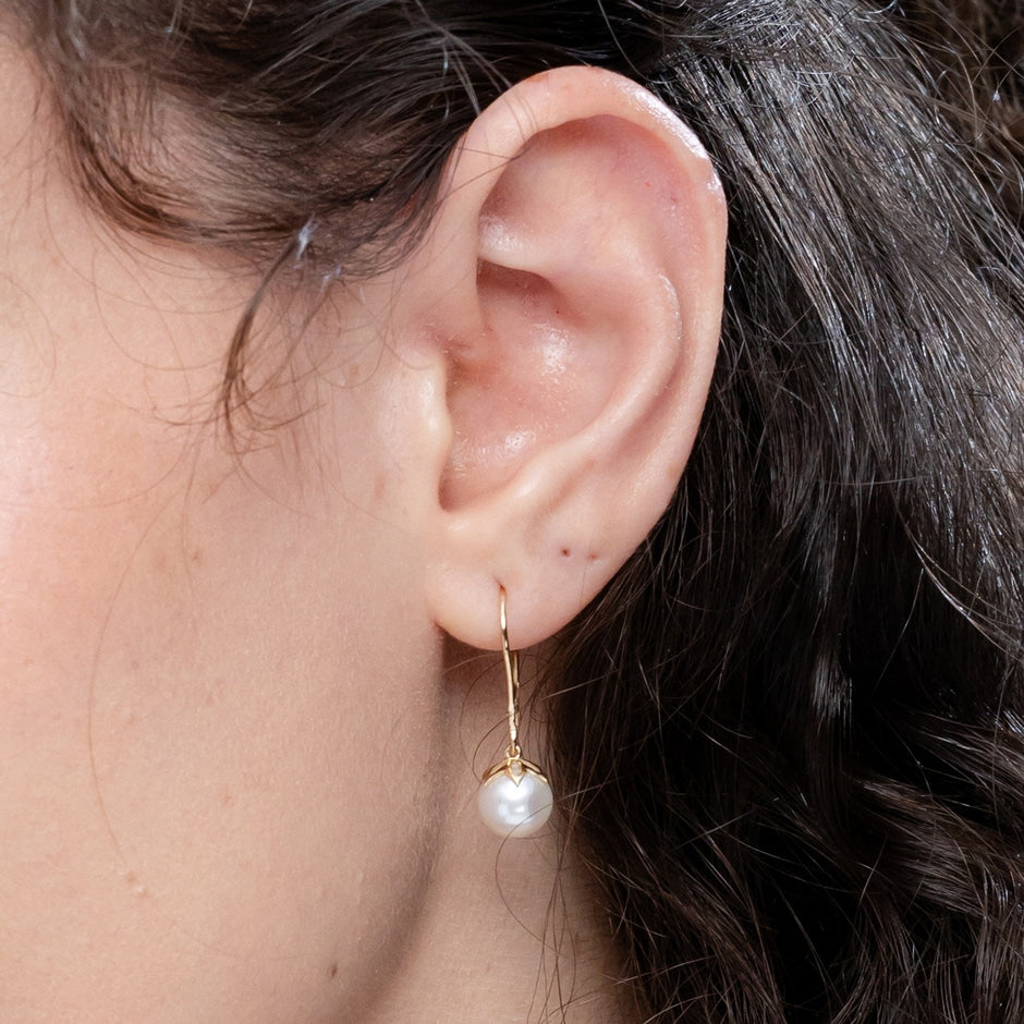Handcrafted in 18K white gold, featuring 2 round freshwater cultured pearls of AAA quality, approximately 10mm each with very high luster. Pearls are peg-set, and earrings are finished with secure leverback clasps.