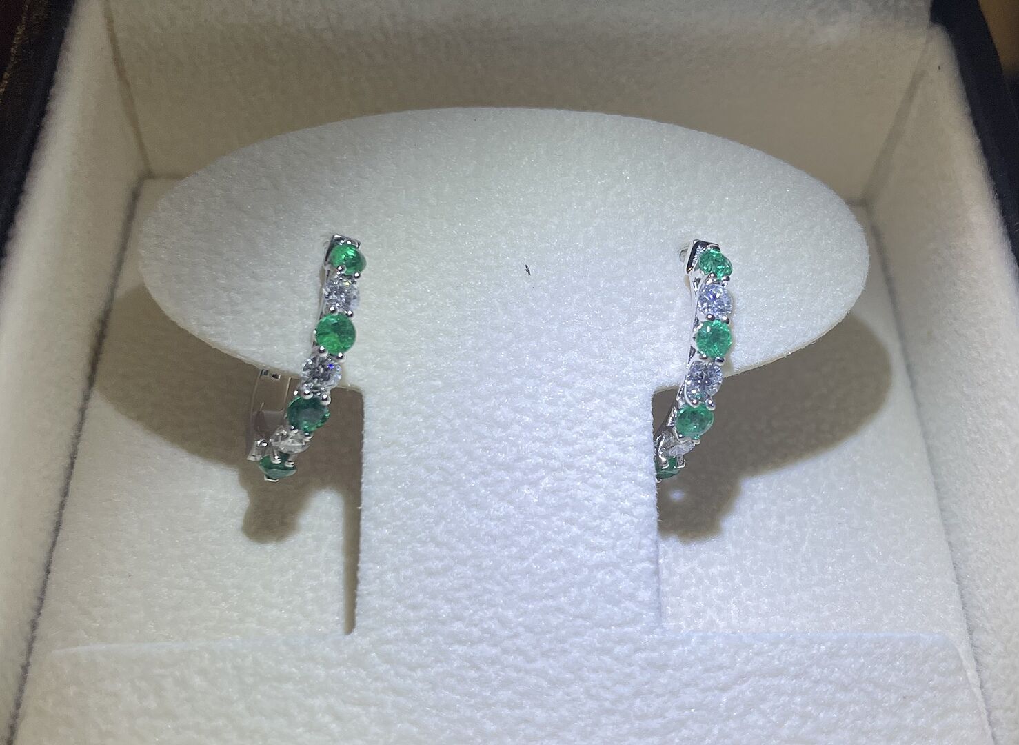 Prong-Set Emerald and Diamond Huggie Hoop Earrings