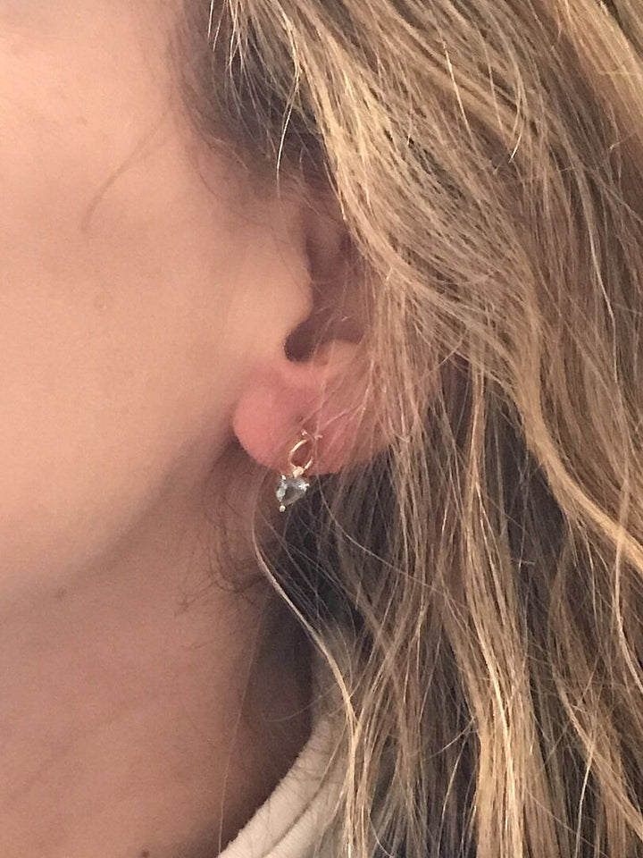 Heart Shaped Aquamarine Ribbon Earrings with Diamond