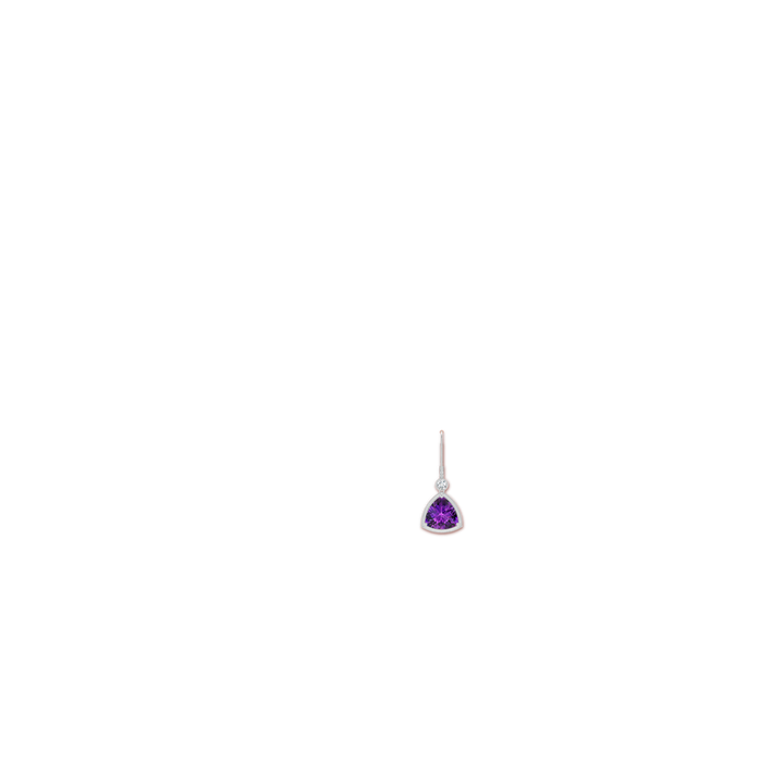 Crafted in 14k white gold. Features 2 trillion checker-cut amethysts approx. 8mm each, total 2.40 carats, AAAA quality, heated enhancement, prong setting. Includes 2 round diamonds totaling 0.16 carats, G-H color, VS clarity, bezel setting.