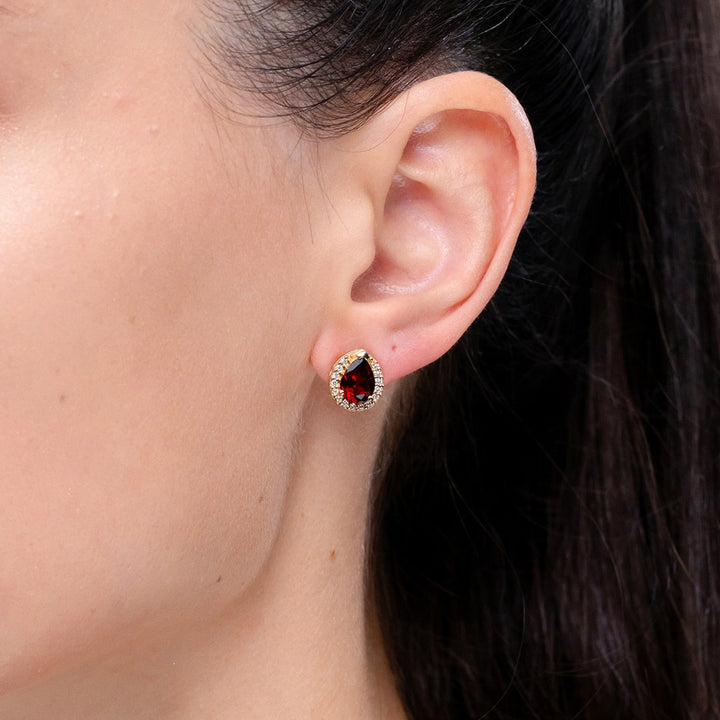 Pear-Shaped Garnet Stud Earrings with Diamond Halo