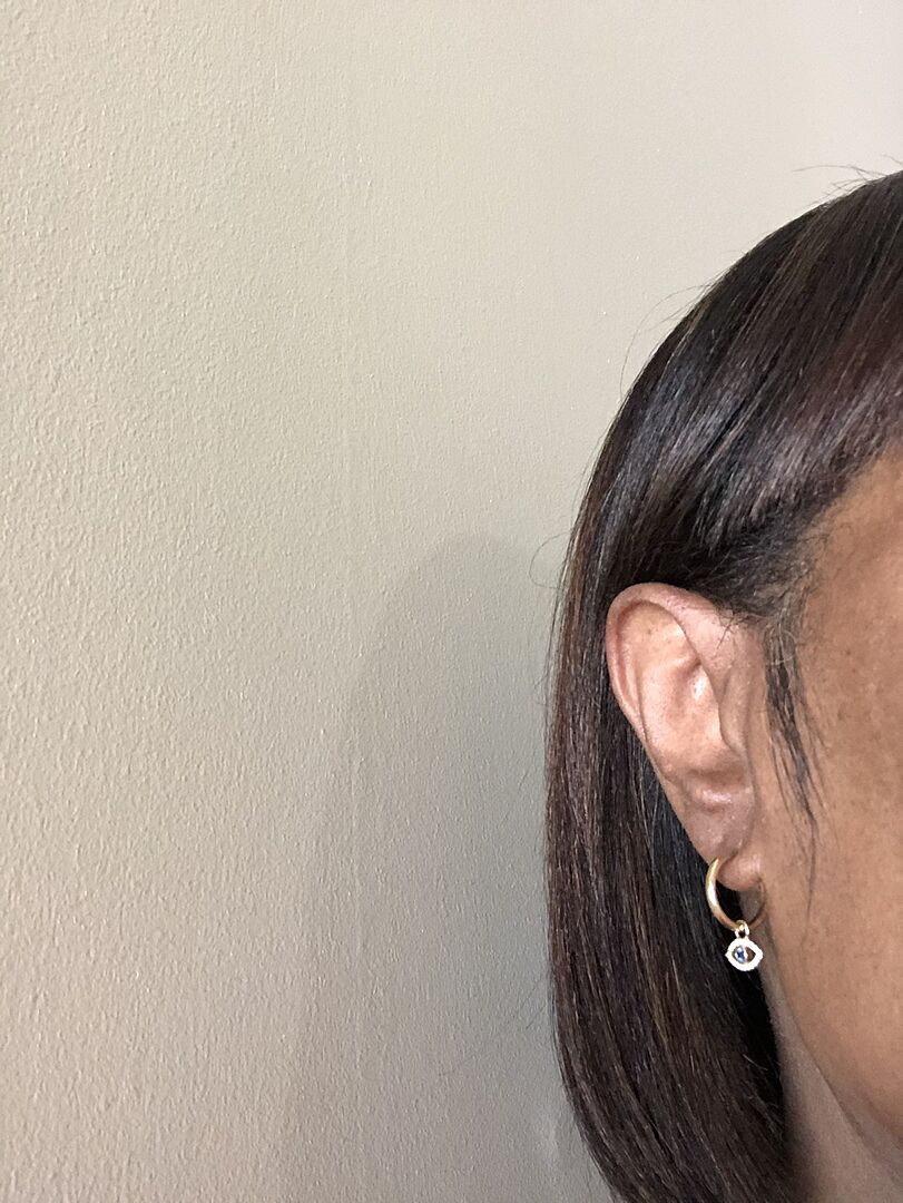 Aquamarine Evil Eye Hinged Hoop Earrings with Diamonds
