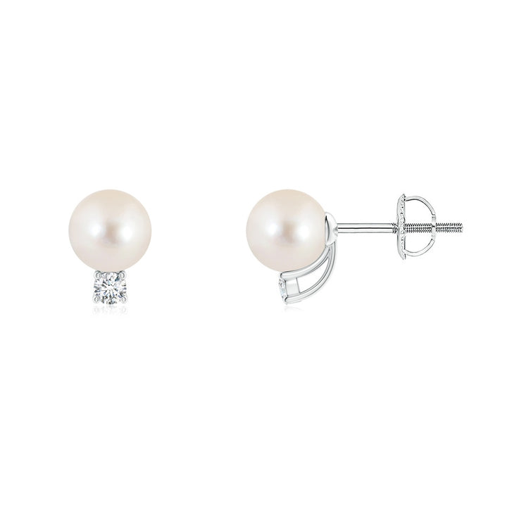 Solitaire Freshwater Pearl Studs with Diamond